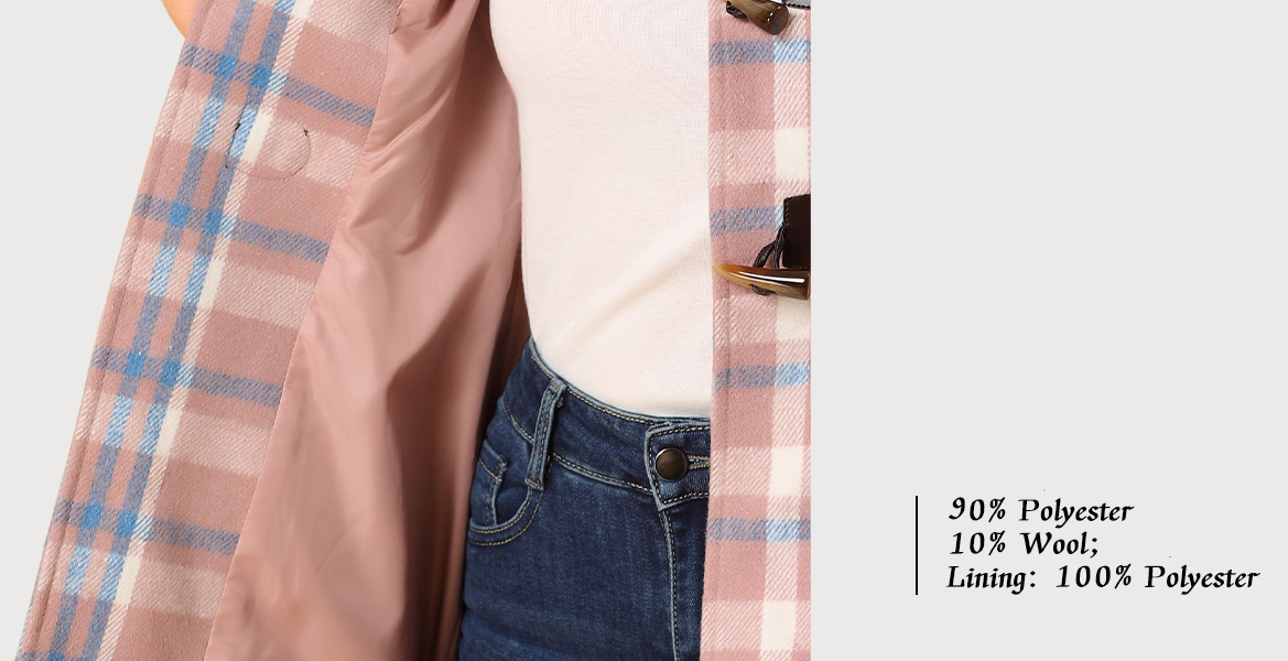 Shell: 90% Polyester 10% Wool; Lining: 100% Polyester