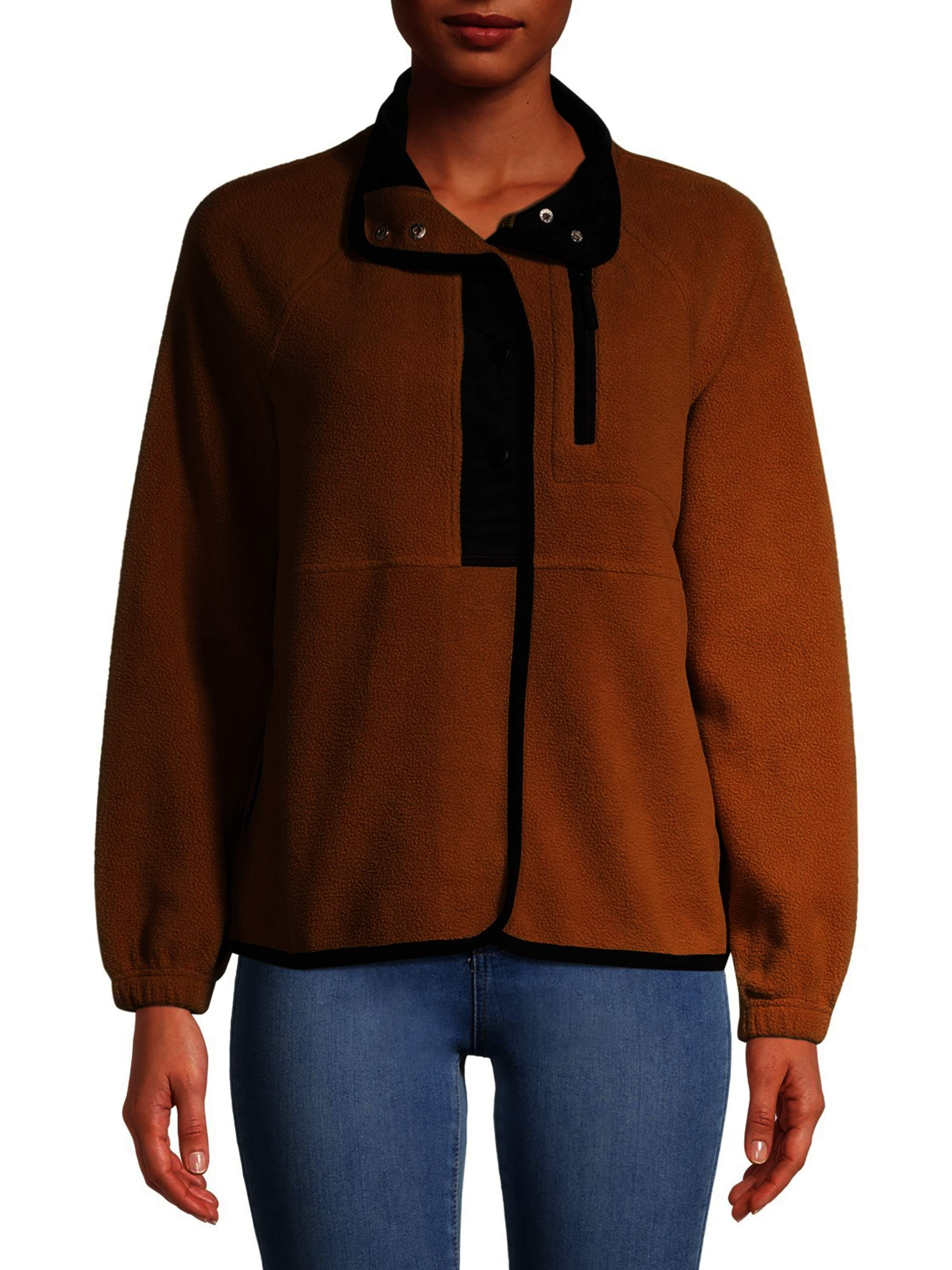 Stay beautiful and warm on chilly days in a fleece pullover. Soft and stylish, this stylish fleece pullover features a stand collar, half-snap placket, and contrast trim. Layer it over your favorite t-shirt or wear it on its own, either way you'll love the soft comfort and loose fit of this must-have pullover.